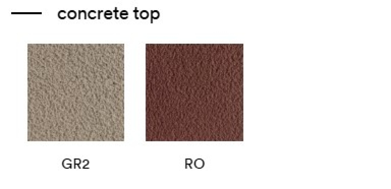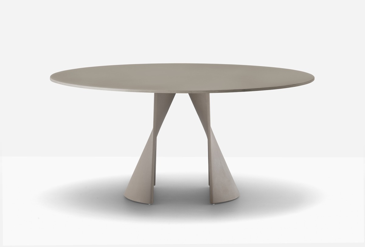 Les tables Pedrali sont disponibles en différentes couleurs de plateau, avec un aspect béton ou une finition phénix.