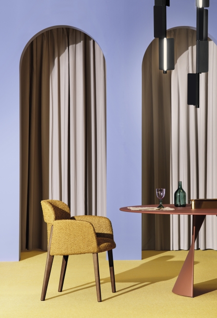 La table Anemos, de la marque de design italienne Pedrali, est une table d'intérieur caractérisée par des formes simples mais architecturales. Sa particularité réside dans sa base, constituée de deux coques en aluminium séparées et fixées au plateau, qui prennent une forme flexible et ondulante grâce à une double courbure. Le résultat est une table visuellement légère mais stable et solide qui peut supporter de grands plateaux ronds et ovales.