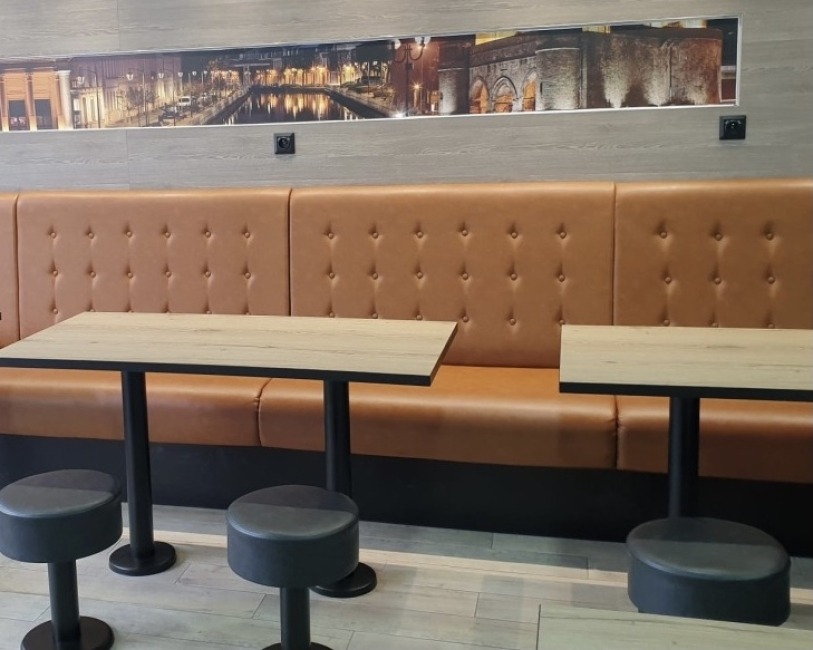 bekleding : stoffe of simileder te bepalen gegarnierd in mousse ( densiteit 45 kg min 6 cm)