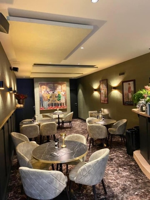 stoel met een comfortabele gegarnierde kuip en ronde houten poten in beuk volgens de houtstinten.
