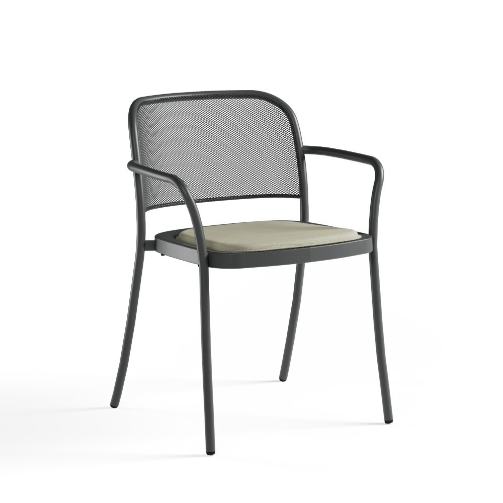 De cafe armstoel van emu , ontworpen door Christophe Pillet, is een lijn stoelen in staal met een eigentijdse uitstraling en klassieke verwijzingen. De stoelen hebben een solide, stevige constructie om langdurig gebruik te garanderen.