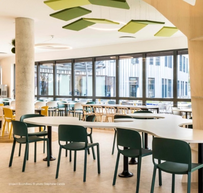 De stoel is vervaardigd in glasvezelversterkte polypropyleen