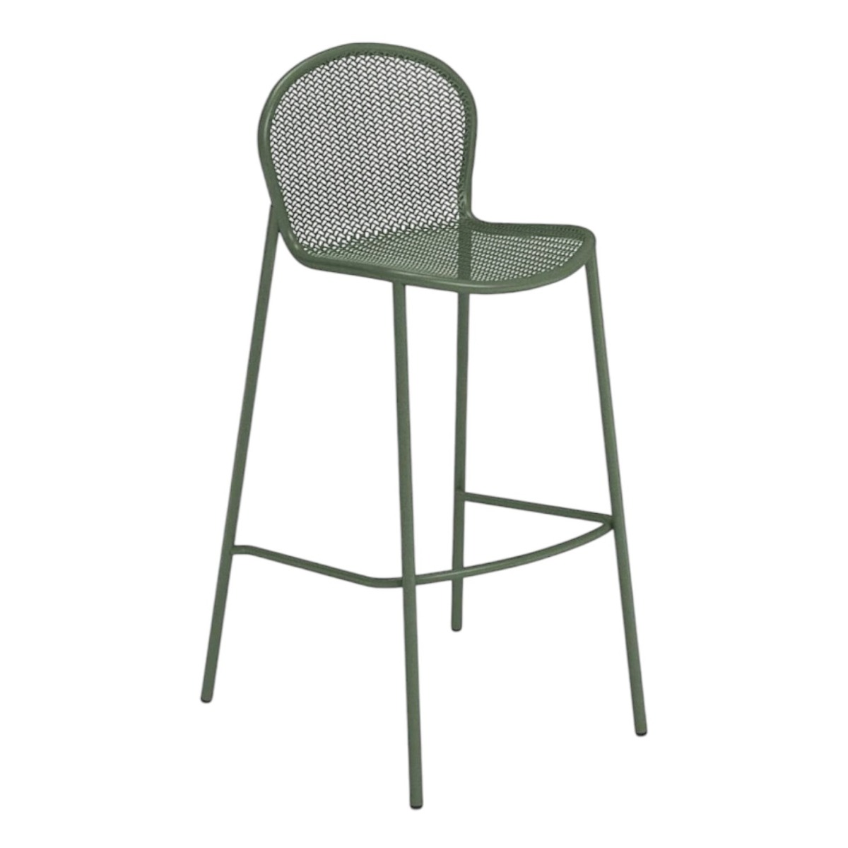 De ronda barstoel van emu vertaalt de vertrouwde vormen van de Ronda - serie naar barkrukhoogte. De barstoel behoudt het geperforeerde stalen oppervlak en de kenmerkende zachte lijnen, aangevuld met een vaste voetensteun voor optimaal zitcomfort aan een buitenbar of hoge tafel.